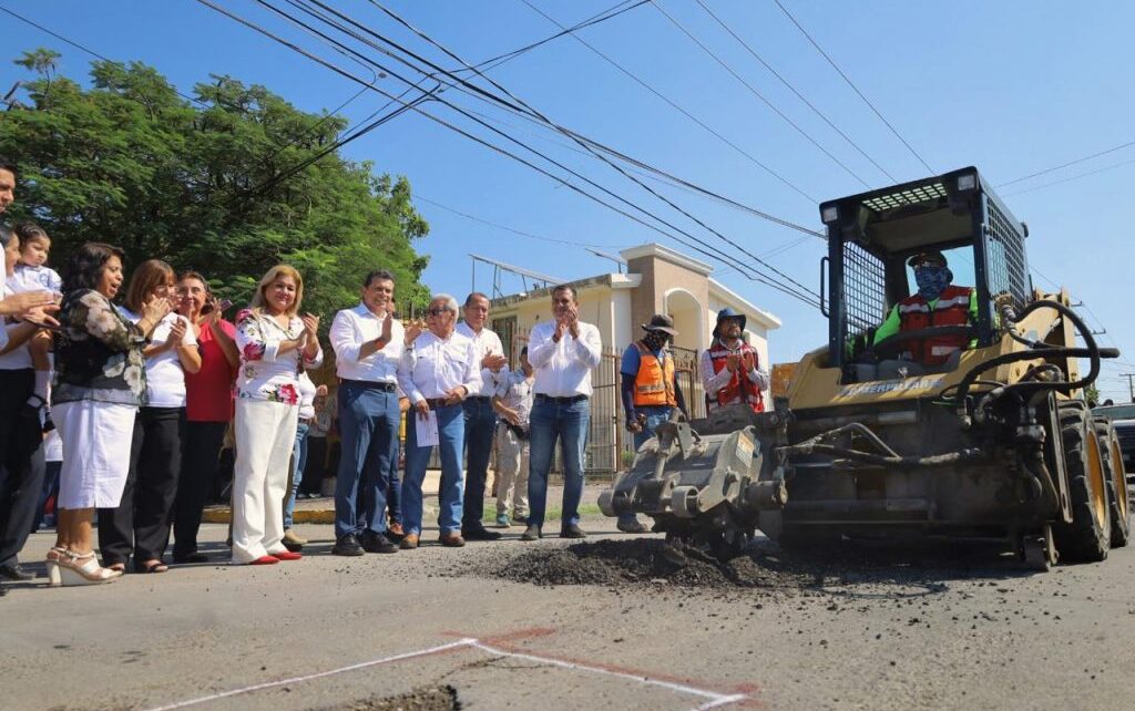 Directivos del Jardín de Niños “Ma. Teresa Treviño García”, primaria República de Chile, supervisión Zona 1 Sector 2 de Preescolar y Sección 30 del SNTE, acompañaron al alcalde Eduardo Gattás Báez al inicio de la rehabilitación de asfalto dañado por las lluvias.