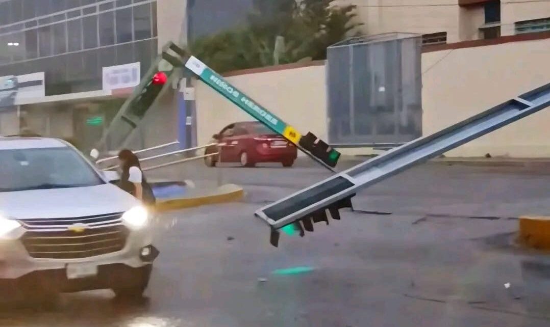 En calles del primer cuadro de la ciudad también se reportó la caída de dos semáforos ubicados en la zona centro, lo que obligó a la intervención de personal de Tránsito.