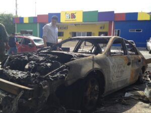 La onda expansiva apagó la energía eléctrica del inmueble, desprendió fachadas, destruyó o averió trece vehículos en la acera lateral, y alcanzó la guardería ubicada frente al periódico, que también registró daños estructurales de consideración en esa misma noche del atentado.